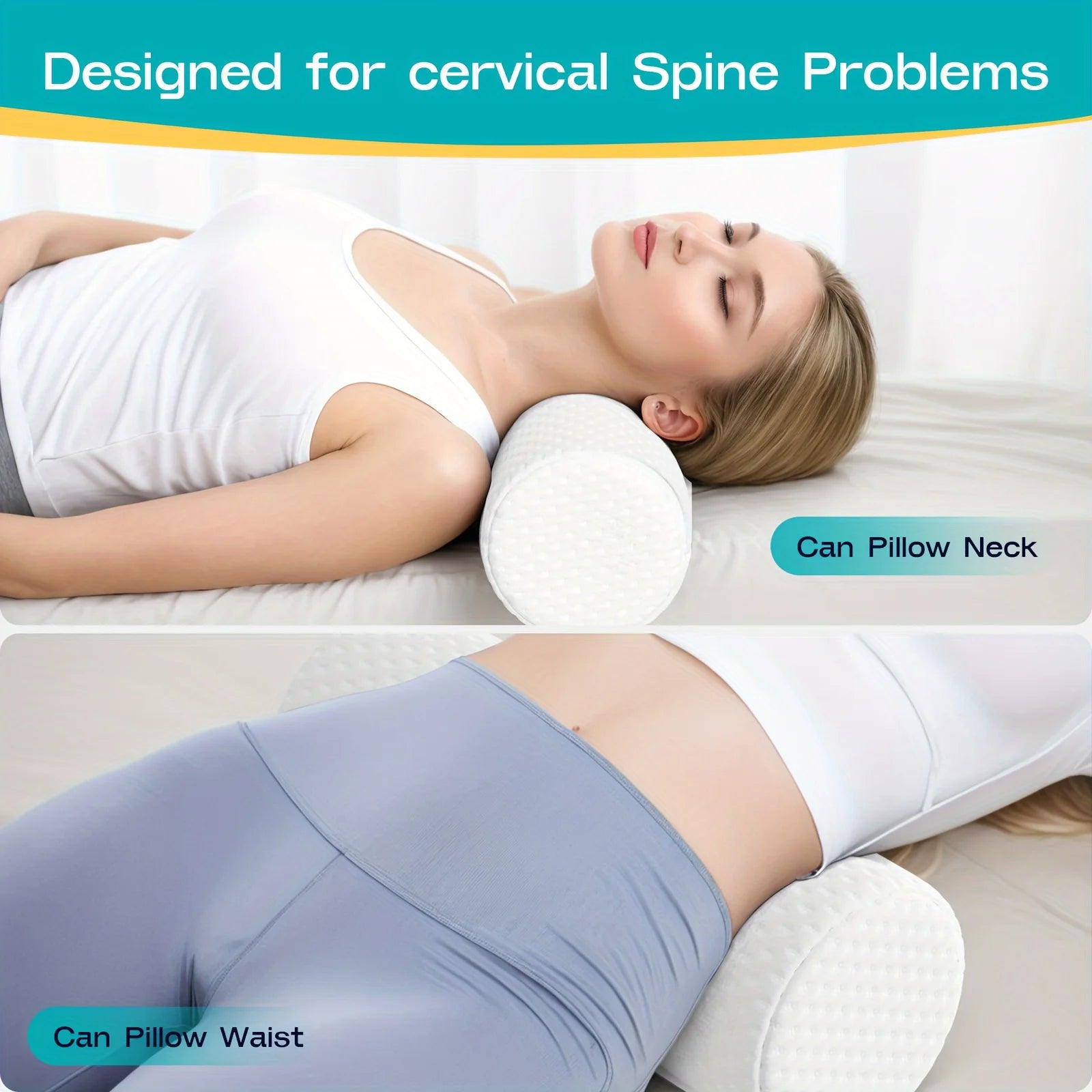 Ge din kropp det stöd den förtjänar med denna ergonomiska cylindriska kudde. Perfekt anpassad för att stödja huvud, nacke, rygg och ben, vilket främjar bättre hållning och ökad komfort under vila eller sömn.